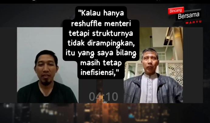 “Kalau hanya reshuffle menteri tetapi strukturnya tidak dirampingkan, itu yang saya bilang masih tetap inefisiensi,” ujarnya dalam program Bincang Politik: Reshuflle Kabinet Tanpa Dirampingkan Cuma ‘omon-omon’ Efisiensi, di kanal YouTube Sahabat Wahyu, Kamis (13/2/2025).