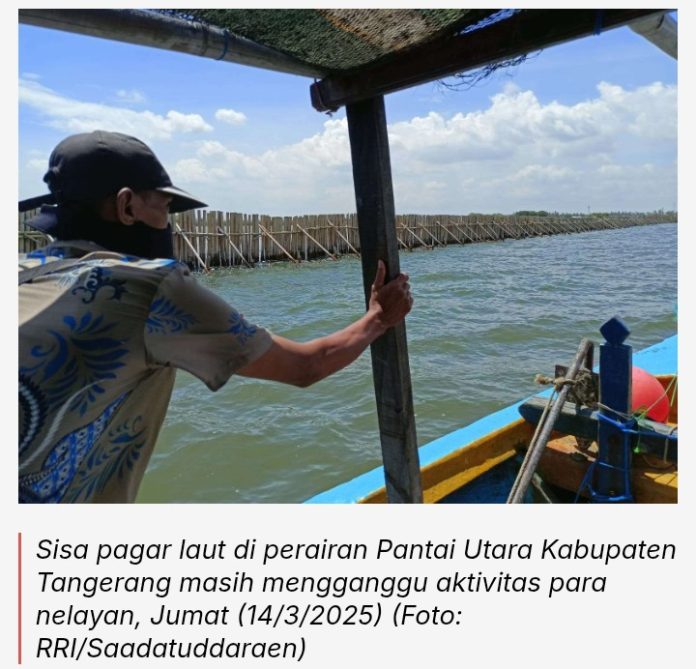 Pagar yang konon telah dicabut, nyatanya belum sepenuhnya pergi. “Betul di perairan Kohod hasil patroli terakhir masih tersisa sekitar 600 meter. Sudah coba dibongkar dengan ditarik tagboat, tapi tidak bisa, butuh alat berat dan ponton,” kata Kepala Dinas Kelautan dan Perikanan Provinsi Banten, Eli Susiyanti, Sabtu (22/3/2025).